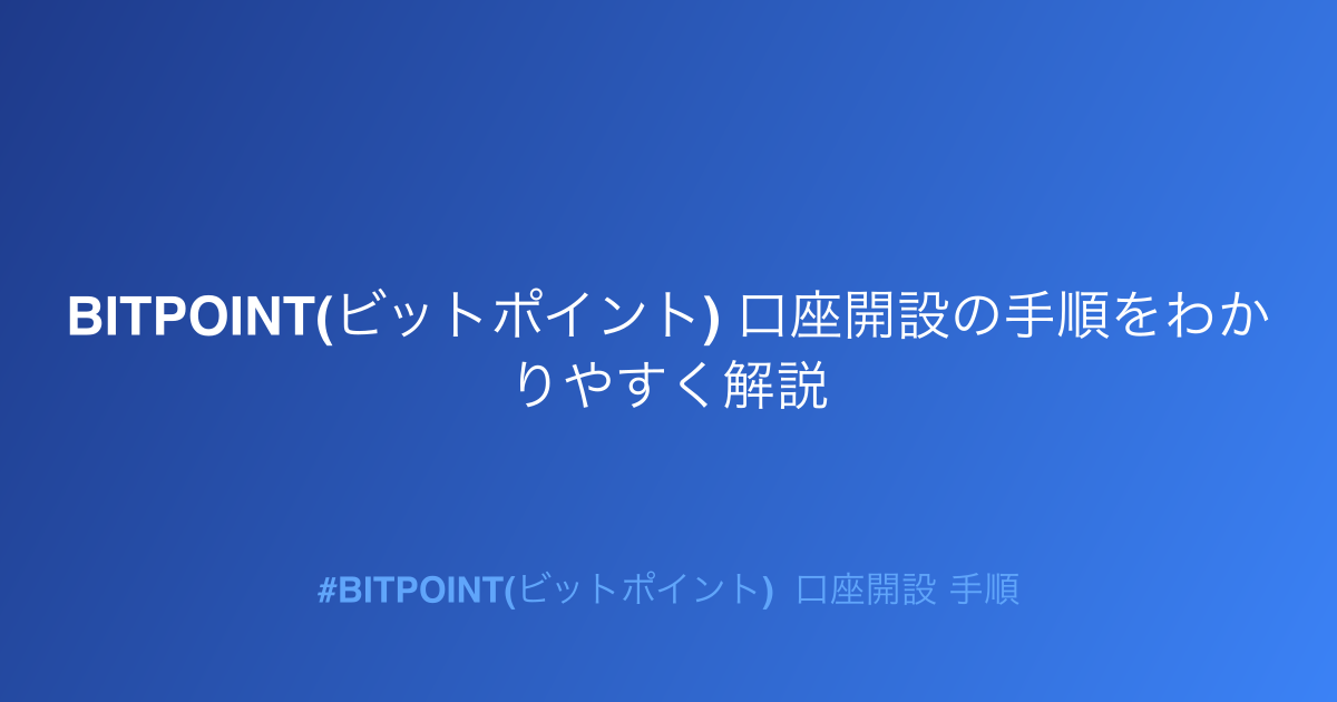 BITPOINT(ビットポイント) 口座開設 手順について、正確で実用的な情報をお探しの方も多いのではないでしょうか。