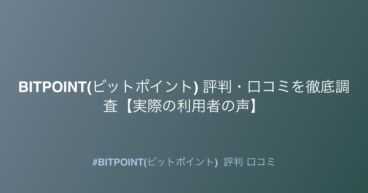 この記事では、BITPOINT(ビットポイント)の評判・口コミを徹底的に調査し、そのリアルな姿を明らかにします。