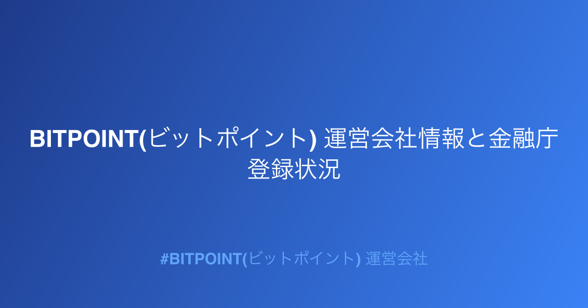 - BITPOINT(ビットポイント)の金融庁登録状況:暗号資産交換業者としての信頼性を検証