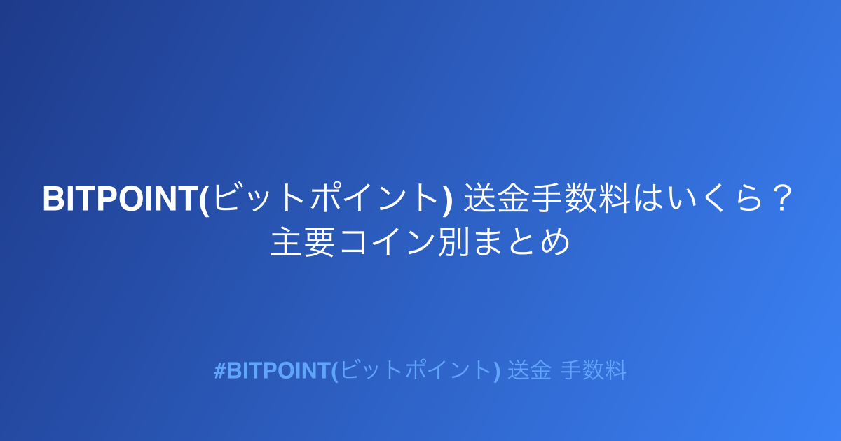 - BITPOINT(ビットポイント)の送金手数料は本当に無料?主要コイン別に徹底検証