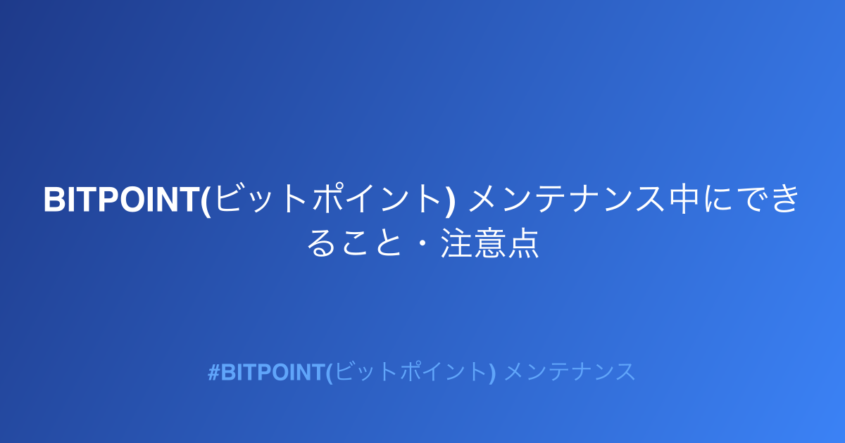 💡 BITPOINT(ビットポイント) メンテナンス中は、取引が停止してしまうため、一見すると何もできないように感じられるかもしれません。